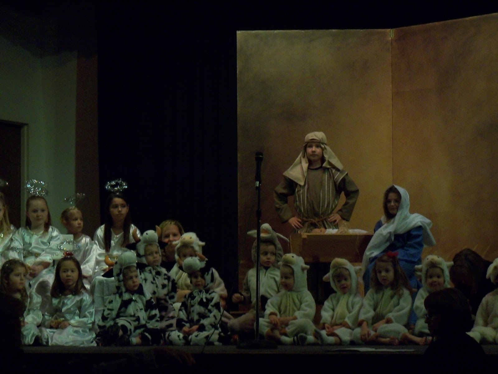 When we were in the Ridgecreek Ward they had a ward Christmas party. They decided to have the children do a play of the Christmas Story for us. Abigail was an angel and Lauren was a cow. They both did a GREAT job!!